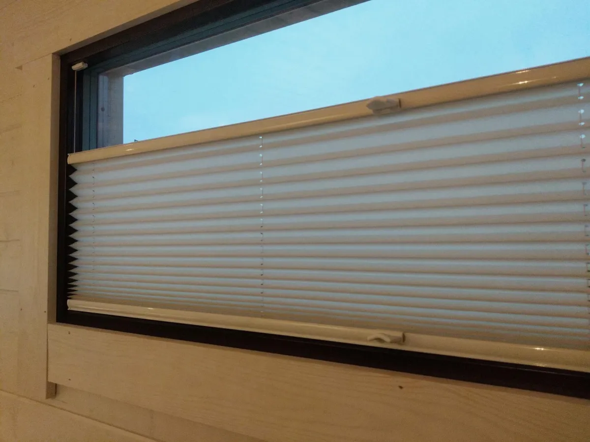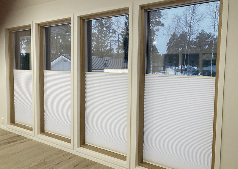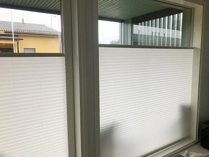 Vekkiverho on helppo asentaa pinta-asennuksena lasin päälle, ja sitä voidaan säätää monipuolisesti – voit laskea verhon ylhäältä alas tai nostaa sitä alhaalta ylös tarpeen mukaan.